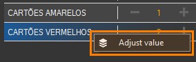 Para alterar os valores das estatísticas com mais agilidade clique com o botão direito em cima da estatística que deseja e depois aperte em Adjust Value.