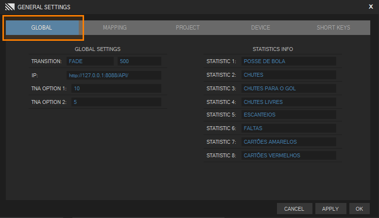 As configurações globais são salvas no seu computador, serão as mesmas independente do projeto que está aberto.