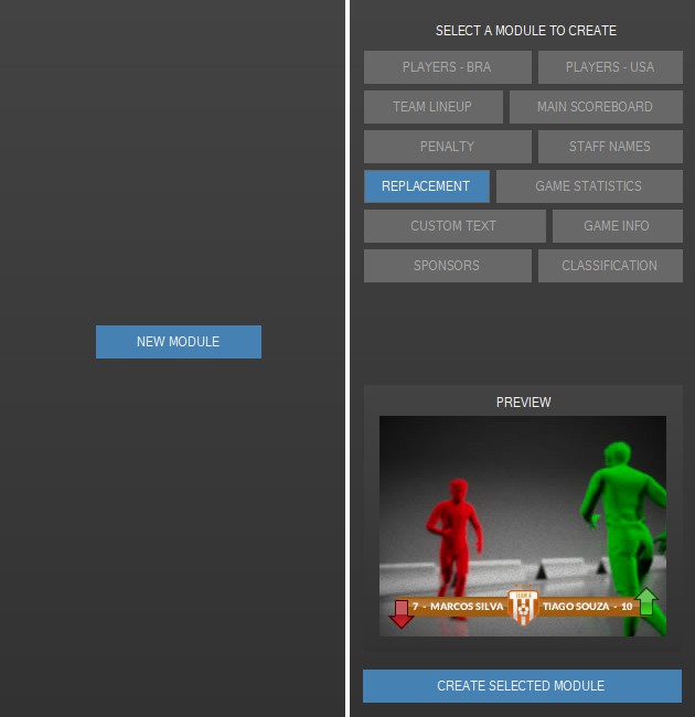 O Title Generator Dynamic Sport conta com 12 módulos para o controle de títulos no Vmix, eles podem ser criados e organizados da forma que desejar entre as 4 abas dentro do programa.