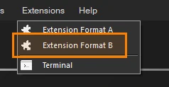 Para adicionar a extensão vá até o menu superior e aperte em Extensions e depois em Extension Format B.