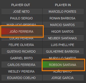 Nota: Os jogadores selecionados vão trocar de lista automáticamente.